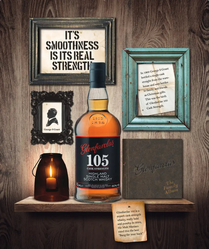 Glenfarclas '105' 16 years old with Tweed Hip Flask