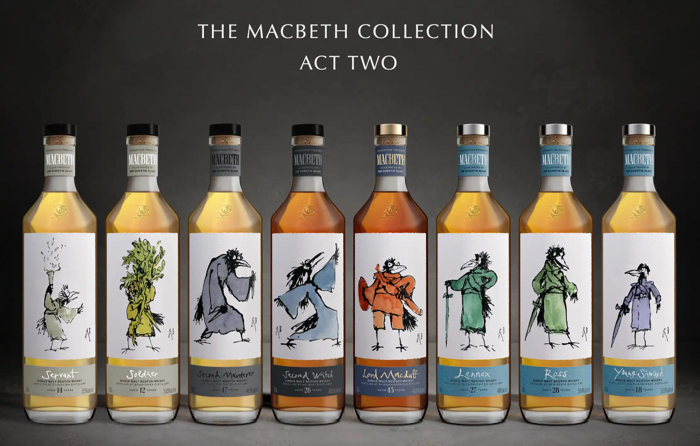 Created in a collaboration between independent bottlers Elixir Distillers and Livingstone Rare Whisky, this series of limited edition releases represents a character from the Tragedy of Macbeth, Shakespeare's Scottish play. Each bottle carries the distinctive artwork of Sir Quentin Blake, bringing these characters to life as anthropomorphic birds.